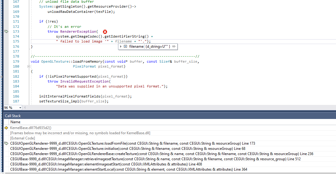 Filename is just showing blank for some reason while debugging, but based on the log, I'm guessing we are loading "TaharezLook.png"